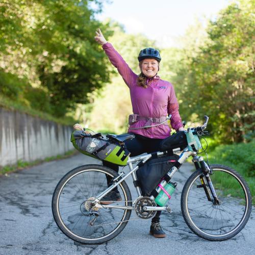 Abby, an advocate for nearby small cycling adventures and champion of normal people giving hard things a go, discovered cycling in lockdown after rescuing her dad’s old bike from the skip. After recovering from ovarian cancer she rode JOGLE off-road and solo; her first bikepacking trip. She candidly shares her stories of adventures – the good, the bad, the ugly and the hilarious – raising awareness for ovarian cancer.