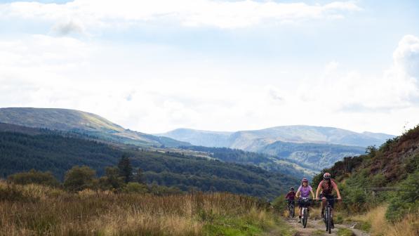 By now the sun had chased away our waterproofs. Clear skies rewarded the morning’s efforts with views towards Llandegla Forest. We bade farewell to Ross at the Ponderosa Café, after he passed on further pearls of local wisdom for the following day’s riding.