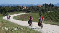 These white roads have been used by generations of Tuscan farmers, tending their vineyards and to transport their grapes and wine. They are far more than a tourist trail – although they do also serve that purpose. And now 24 members on a CTC Tour (plus another 20 who started the week before) were trundling along them on mountain bikes, folding bikes, road bikes, touring bikes, old battered bikes, new shiny bikes, steel bikes, titanium bikes, with dropped bars, flat bars, wide knobbly tyres, skinny slick tyres and treaded touring tyres... all setting off to see the well-known and the lesser-known sights and experiences that this part of Italy has to offer.