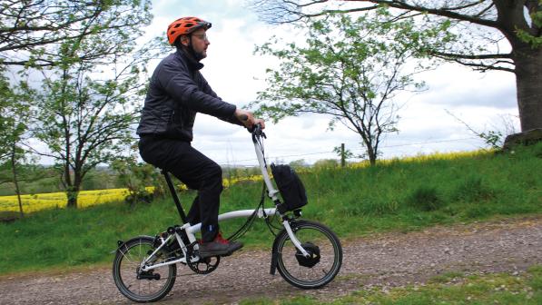 The G Line has better handling than a standard Brompton. Its slacker head angle and bigger wheels yield more trail, and the longer wheelbase and wider tyres improve stability further. I could just about ride it no-handed. It reminded me of the Tern Node D8 (cyclinguk.org/less-famous-folders), in that it feels more like a normal bike that can be folded.