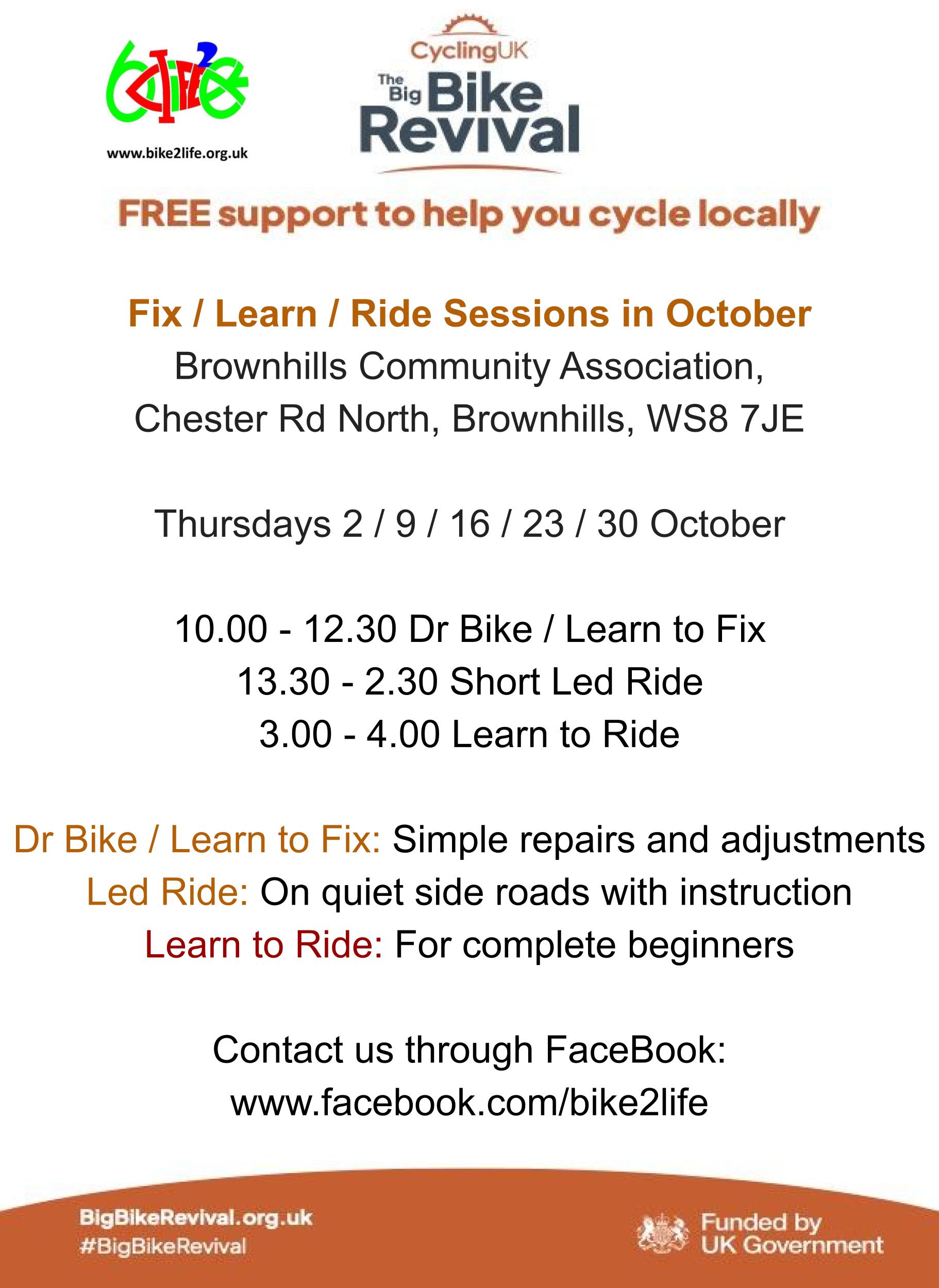 We offer guided learn to fix sessions for your bike, we have some trikes to try out and have been delivering led ride as part of the Big Bike Revival programme.