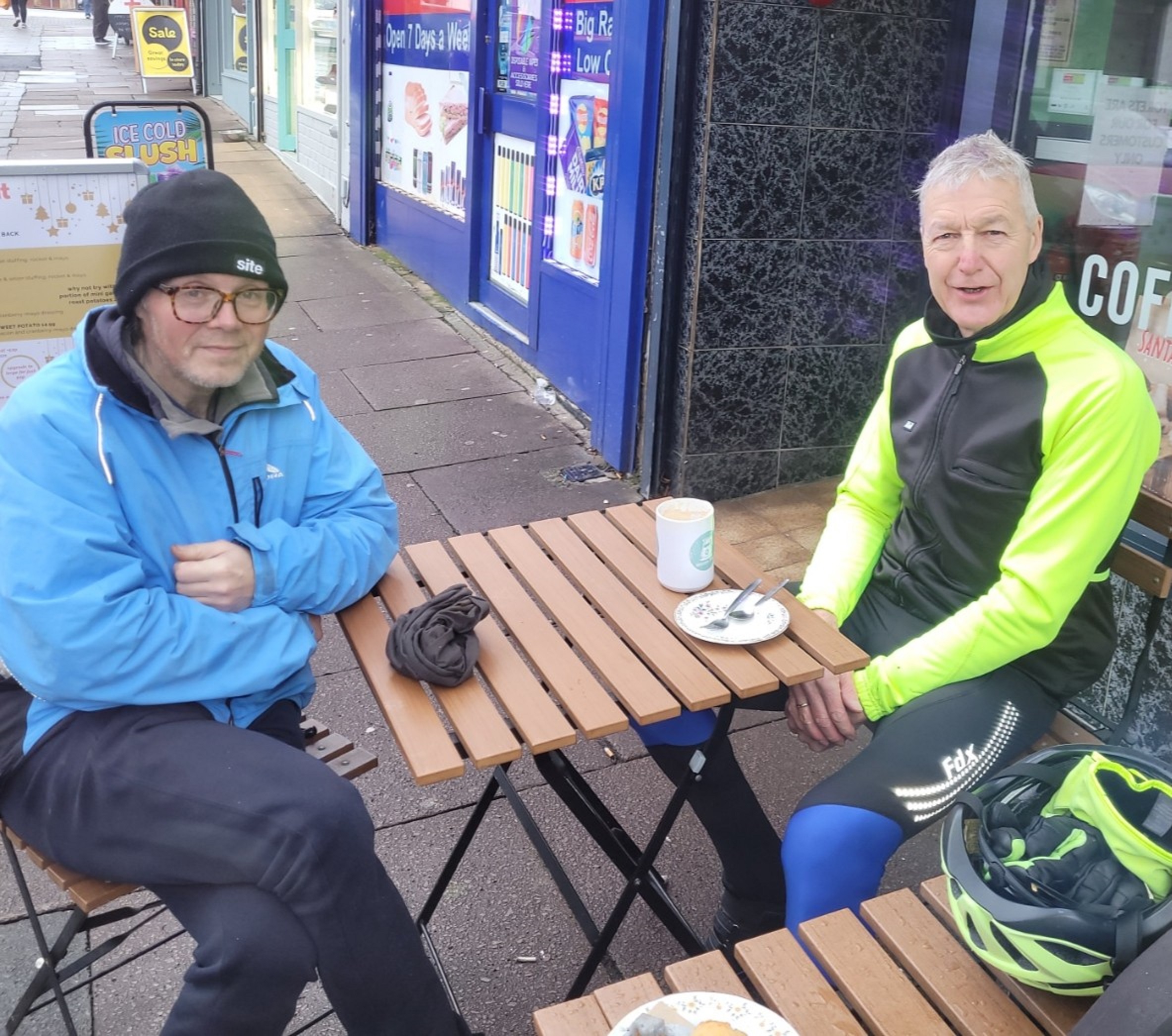 The flat route of Brackenborough, Covenham, Fulstow, Tetney and Humberston had been downloaded onto satnavs and with a gentle south-easterly a decent pace was kept up all the way to Cleethorpes. There seemed to be plenty of cyclists on the roads, not everyone had taken to the skies or ferries for the festive period. It had been decided that Daracottes coffee shop would be the destination but on arrival we were greeted with shutters firmly closed. There was an alternative, the Riverhead coffee shop on St Peter's Avenue. One of us had difficulty finding it even though the signwriting above the door was big enough!