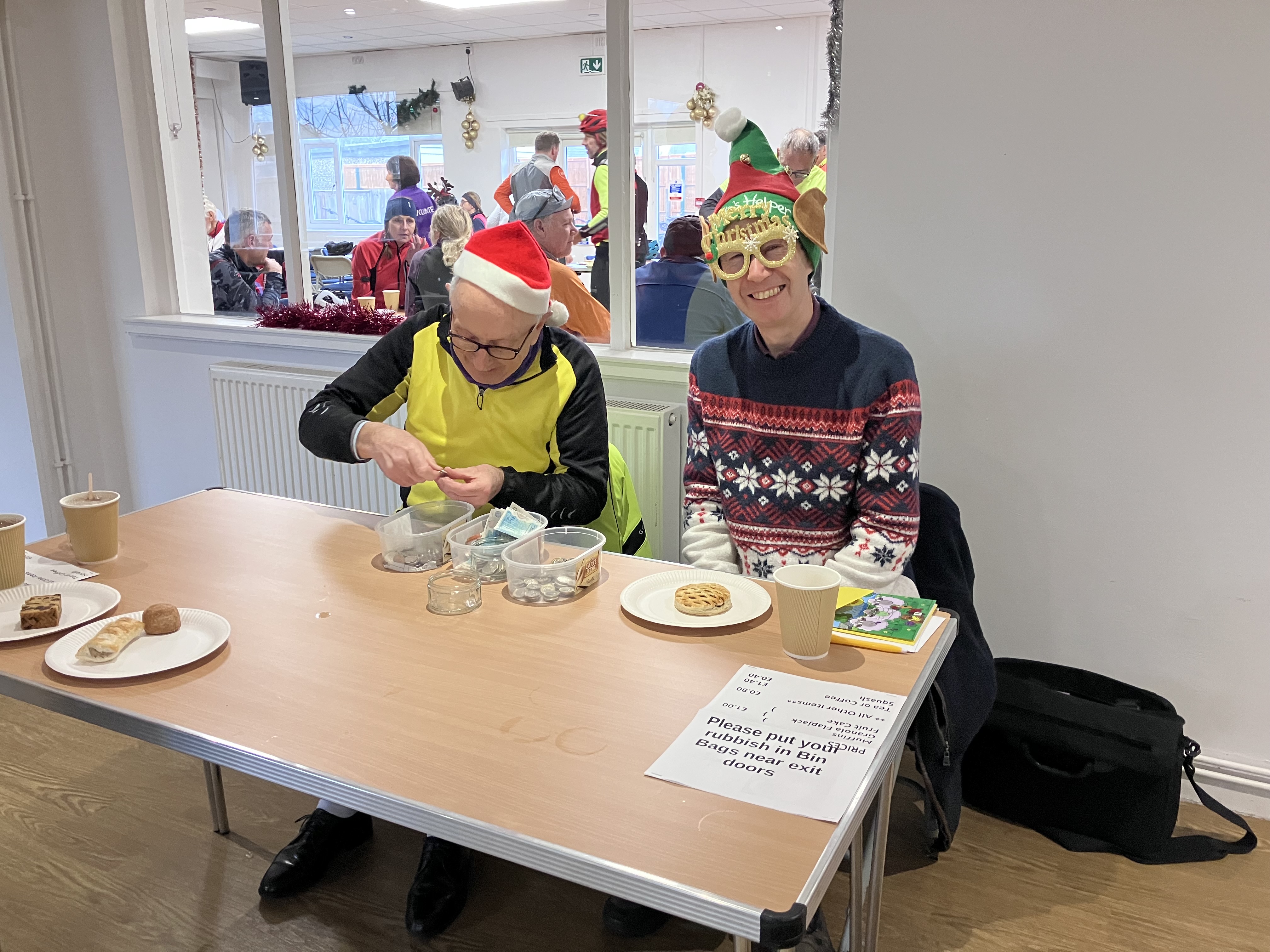 Thanks to all the volunteers who helped make this event such a success, from those of Notts CTC and others serving at the counters providing steaming mugs of tea and coffee to the backroom team in the kitchen. Thanks, in particular to Jean and Leila Lakin. There was a good trade in traditional mince pies along with an array of other snacks.