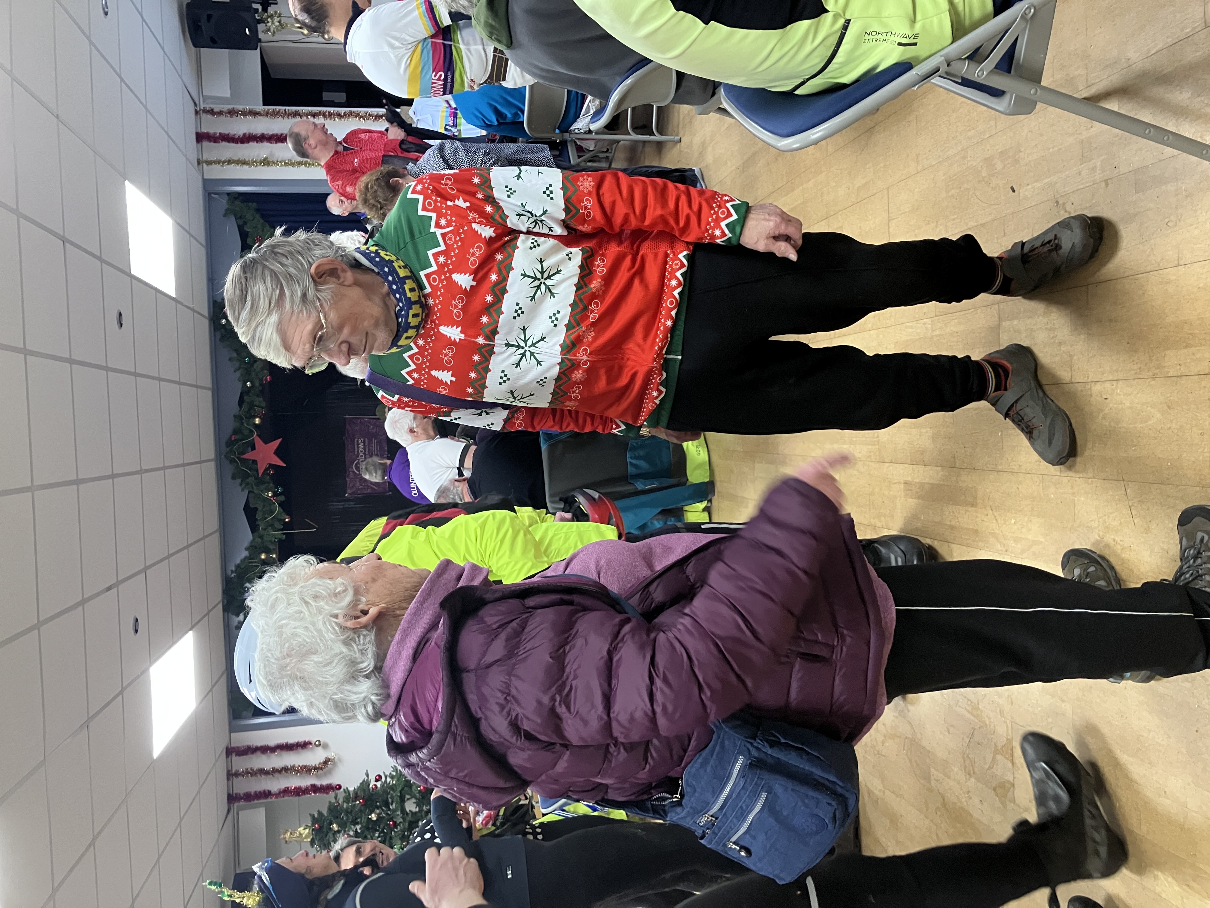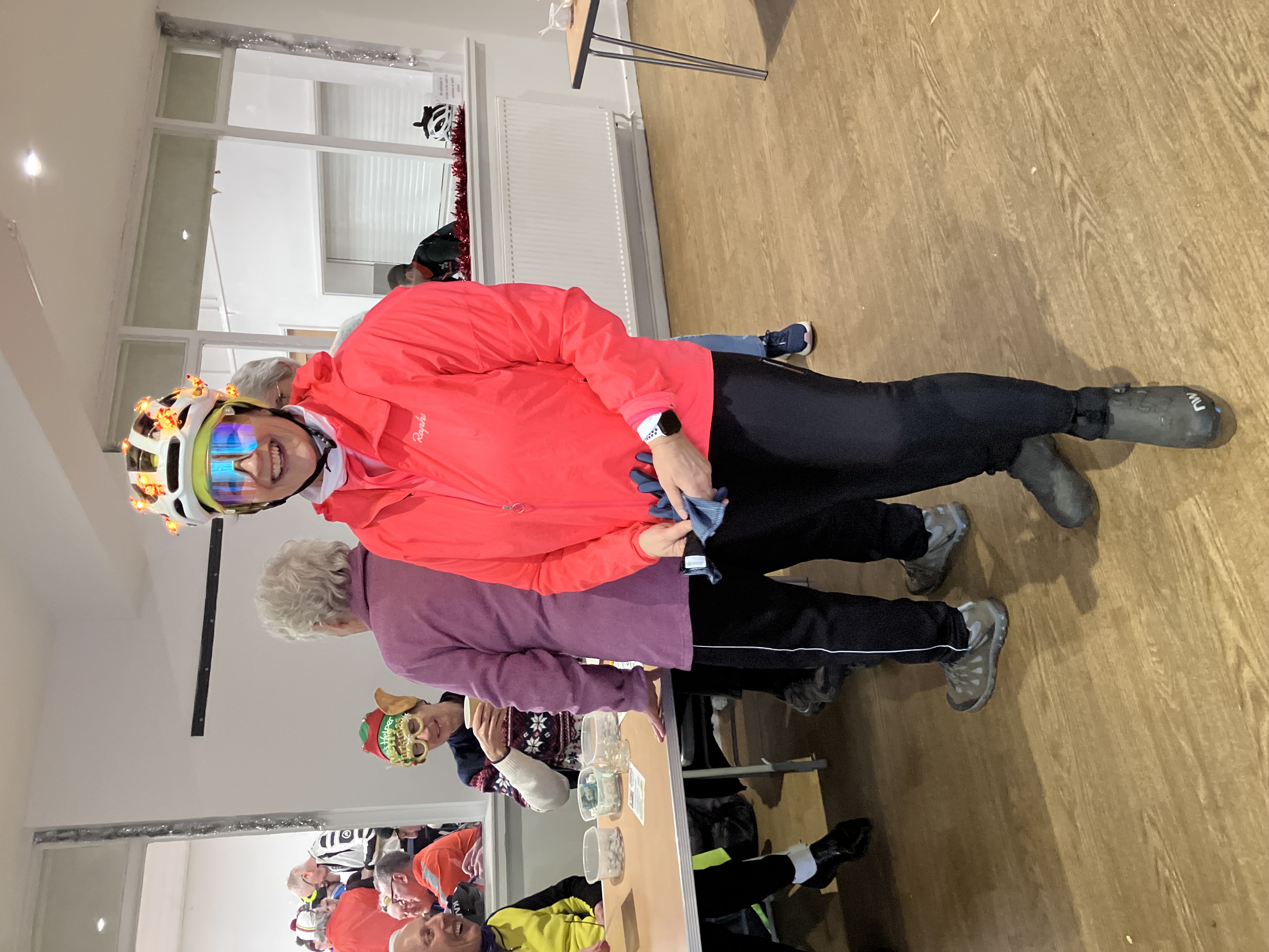 A number of cyclists turned up looking very festive sporting Santa jerseys, a very fine Rudolph the Red Nosed Reindeer helmet and Jacqueline Lowe had arrived with her helmet decorated and lit up with Christmas lights.