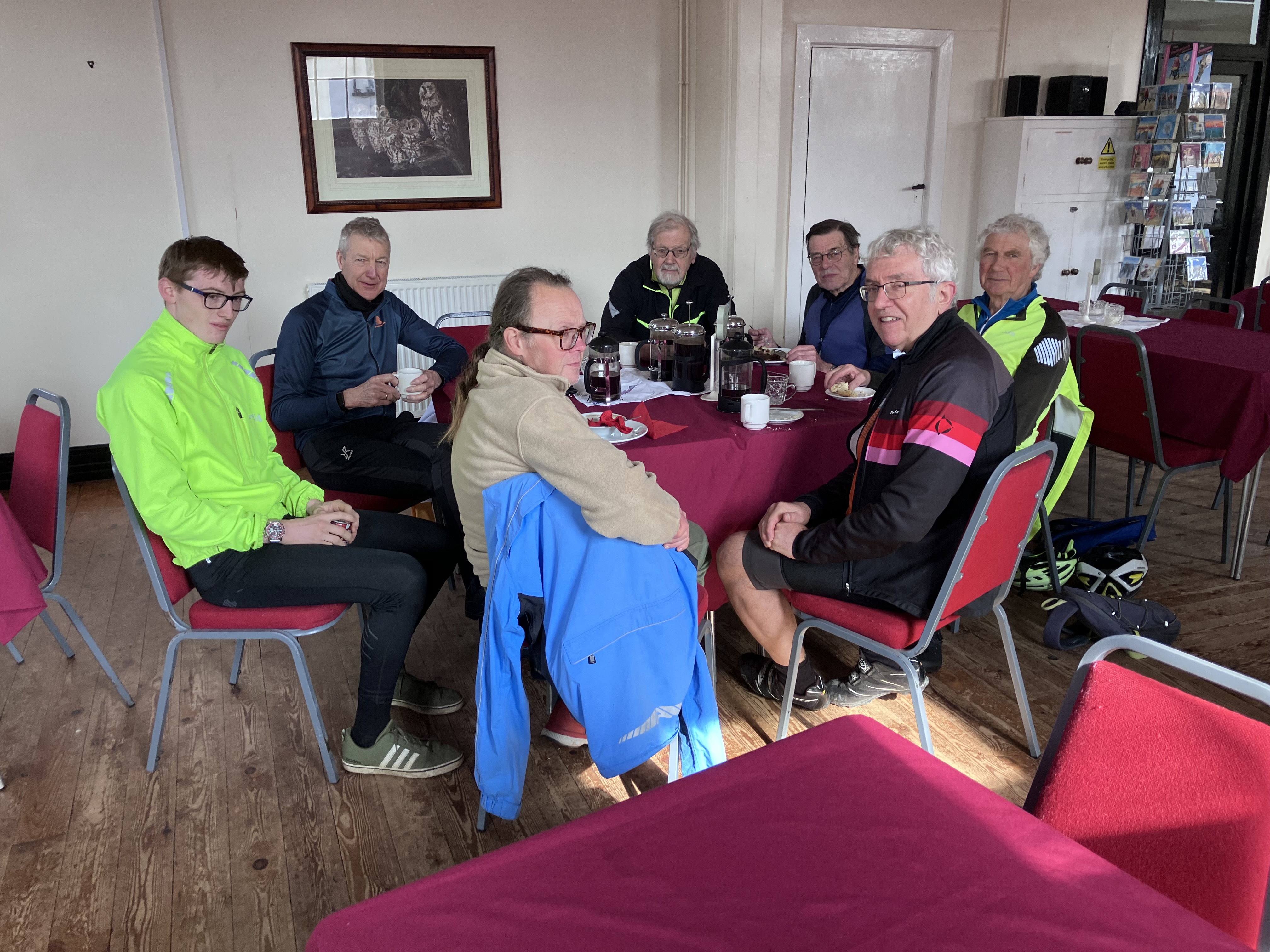 Arriving at North Thoresby Village Hall a little before 11 am, there was plenty of room for us to sit down and several large cafetières of coffee were delivered to our table. A mix of scones, bacon buns and a slice of cake for Harvey.