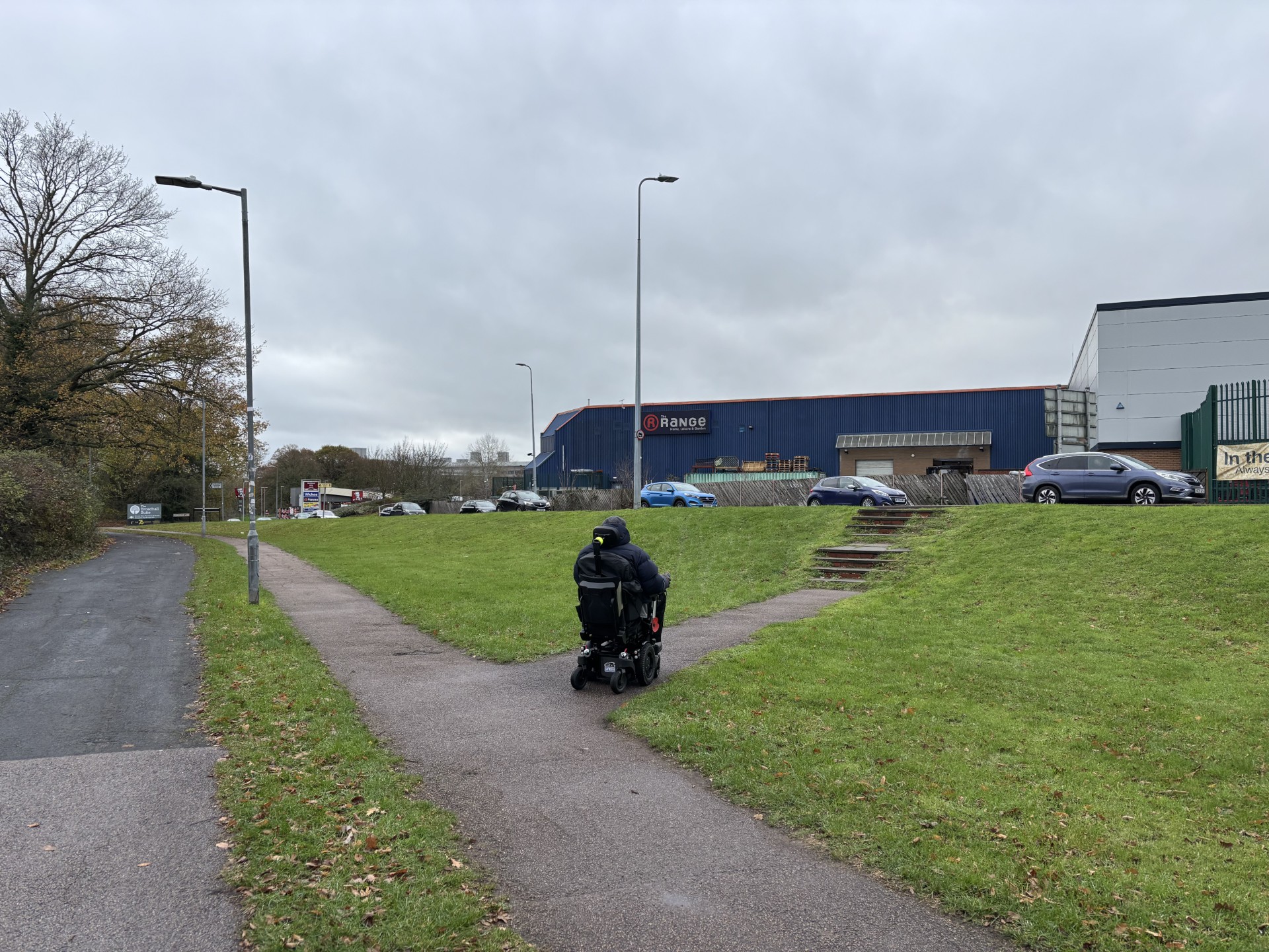 - The picture in the gallery below is shared with permission from the man shown. He was waiting for his wife who was shopping in The Range. As a mobility aid user he could not access the store.