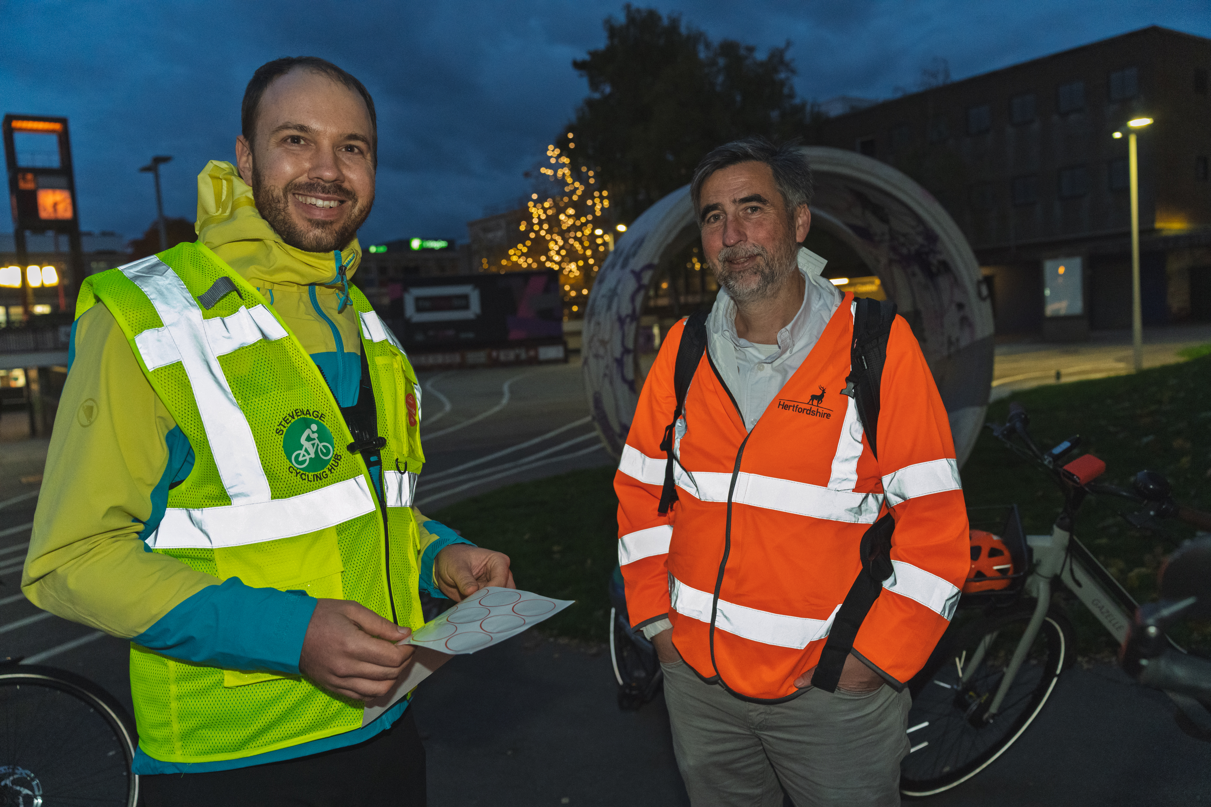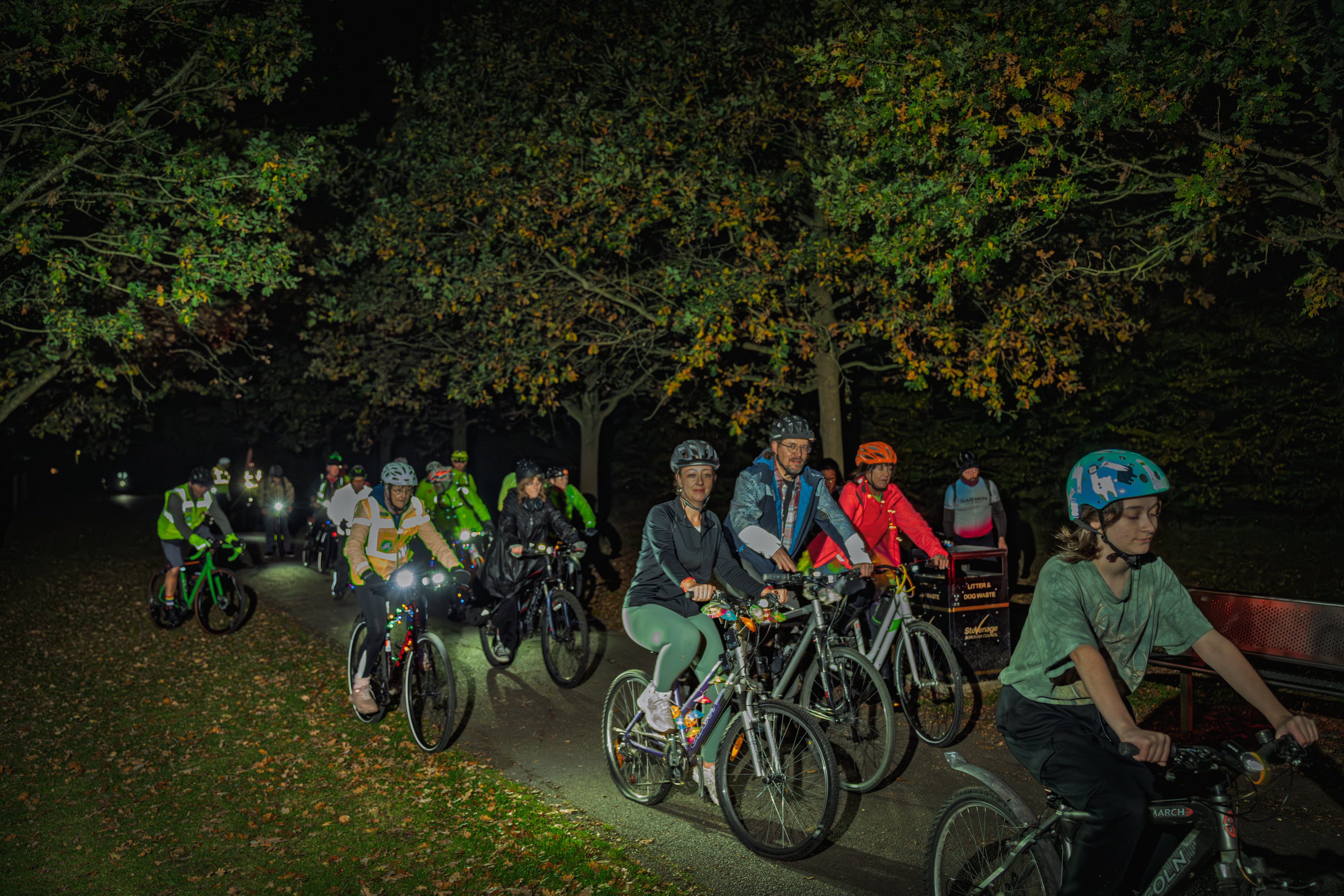 More than 50 riders joined the Stevenage Glow Ride On Wednesday 22nd October. We were in good company with over 60 rides taking place across the UK on the Cycling UK national night of action as part of the ‘My ride. Our right’ campaign.