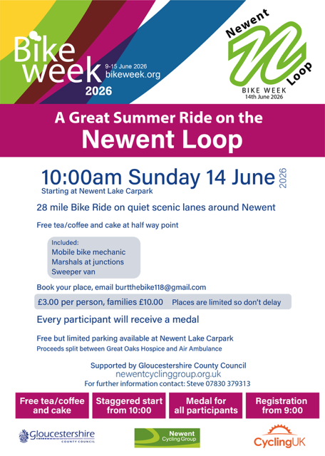 Newent Cycling Group are proud to have developed a fully sign posted, 28 mile route around the lanes of northern Gloucestershire. See newentloop.org for more details.